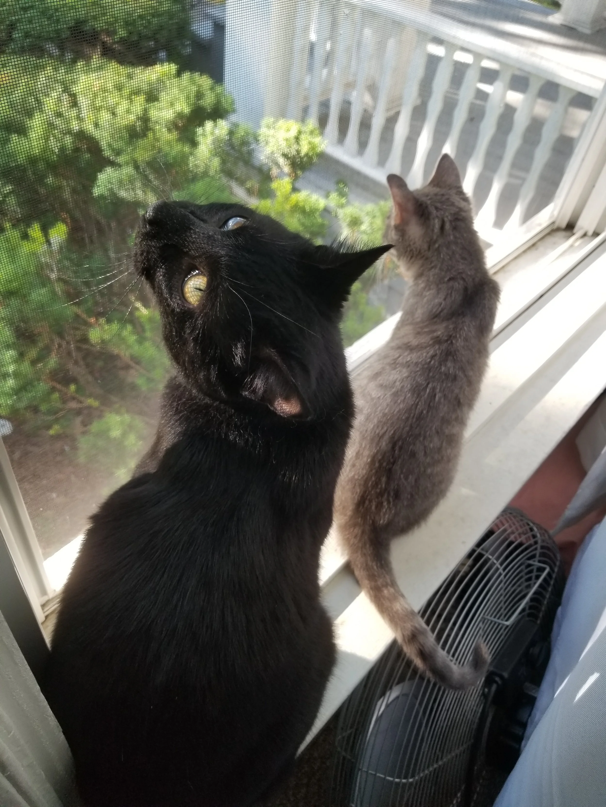 Then as Jack was getting comfortable and the novelty of the house had started wearing off, he lunged at my sister, a person he generally tolerated, who was just sitting on the couch and being quiet. If I hadn’t seen it coming and blocked his leap with a blanket, I don’t know what his plan was. I was sure he would have hurt her. He was also starting to fixate on his brother Beans, stalking him around the house. He’d stalk ME around the house, especially at night, a blur of shadowy fur launching himself at my legs as I walk down the hallway to bed.